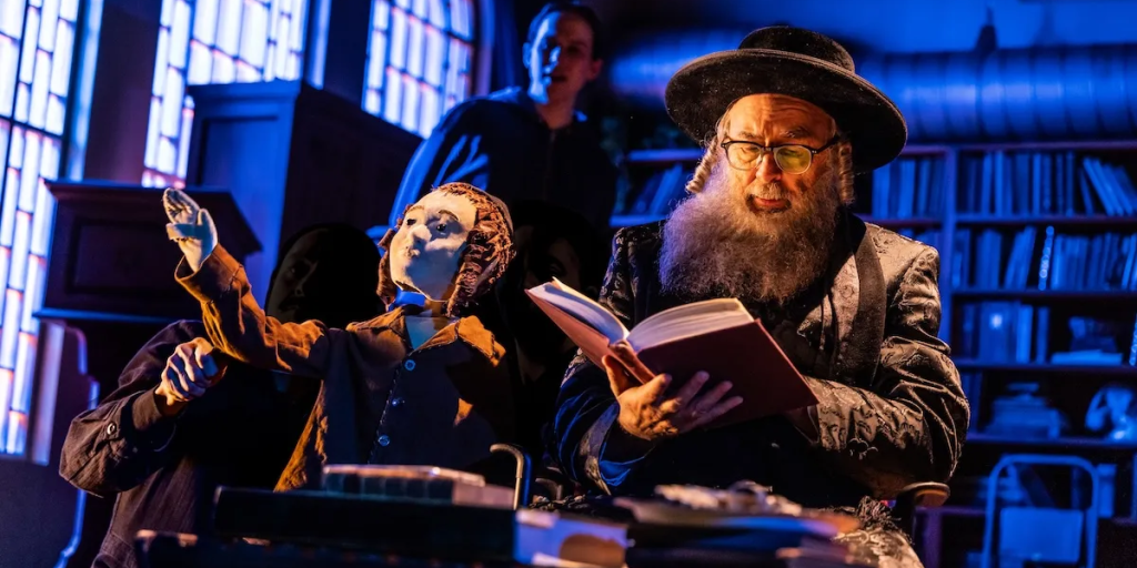 The puppetry adds layers of otherness and soulful disconnection, while also injecting such love and empathy for the young child in conflict with their inner self, their family, their religion, and the community that was the center of their life from the day they were born. But with quick, sharp lighting cues, designed carefully by Ben Stanton (Broadway’s Maybe Happy Ending), on a set created with care by Arnulfo Maldonado (Broadway’s Buena Vista Social Club) matched with a solid sound design by UptownWorks (Bailey Trierweller, Daniela Har, Noel Nichols; Geffen’s Tiny Father) and perfect costumes by Enver Chakartash (Broadway’s Stereophonic), the emotional return creates a space of loving understanding and care for the child who isn’t one with her own soul. It’s carefully crafted and thoughtfully written by Weinstein, powerfully based on the memoir, “Becoming Eve: My Journey from Ultra Orthodox Rabbi to Transgender Woman” by Abby Chava Stein (Sources of Pride). We can feel the authenticity and authority with which her tale is being told, thanks to the ingenious direction by Tyne Rafaeli (2ST’s Spain), who balances the past with the present with compassion and pain, finding humanity even within the strict confines of Tati and the traditions he holds onto with fearful determination.