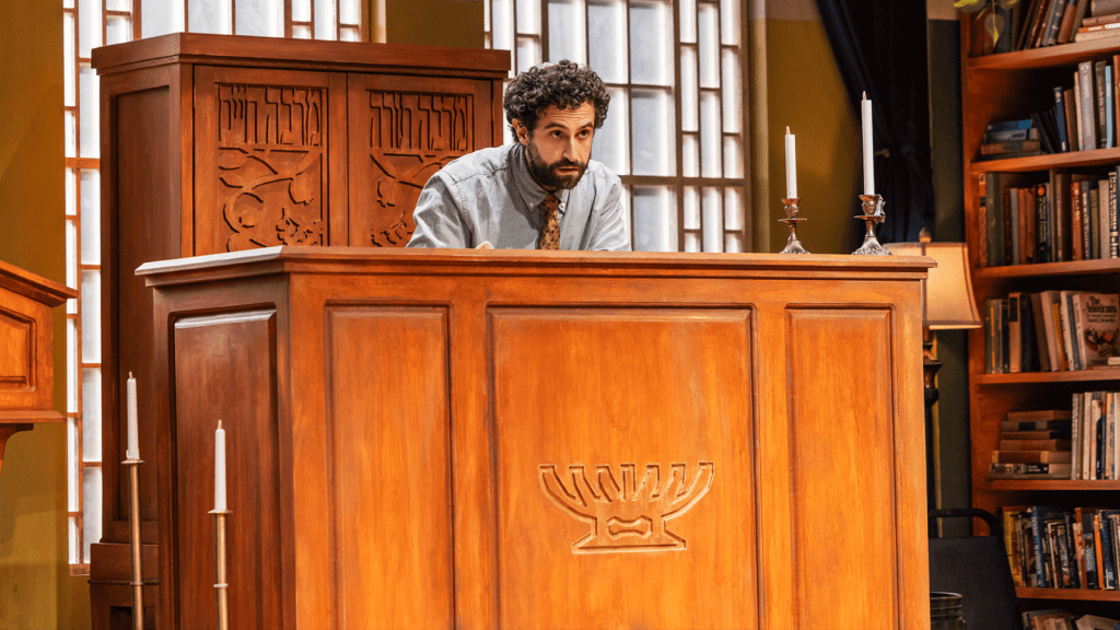 The act, as many of us know and understand on some level, is a brave, solid moment of truth-telling wrapped in fear and concern, as Jonah reminds the nervous Chava, to both support her in the telling to her beloved father the truth about his “firstborn son“, before someone else does. Thus, the emergency, because Chava, who has been praying her whole life to be the girl she feels she is on the inside, when the soul and the body are in mismatch, has to be the one to do the telling, before community gossip can enter in before she has this moment with her father. And she has the text to make her point. “Should we talk strategy?” asks the now-equally nervous Jonah, played beautifully by an impressive Brandon Uranowitz (Broadway’s Leopoldstadt), because Chava’s father, who is on his way, is a well-respected rabbi, who comes from a long line of renowned rabbis and educators and is a descendant of Baal Shem Tov, the founder of Hasidic Judaism. So, in no simple way, this debate is going to be a battle between faith, tradition, family, pride, and the understanding of an alternate view of the soul within our body. And no one really sees the opening, unless the sacred text can make the case.