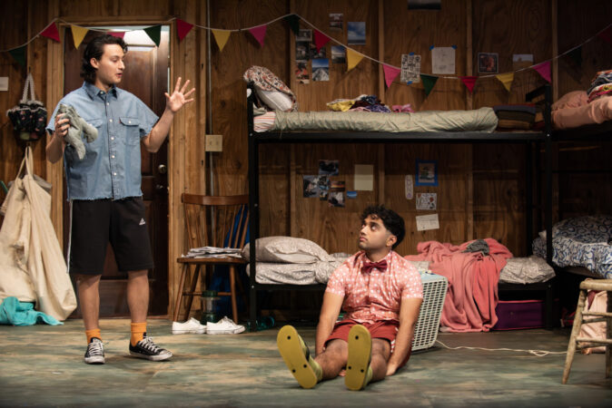 It’s profound and moving, this examination, echoed in guitar strumming by a quiet adult, portrayed solidly by Alden Harris-McCoy (Dear Evan Hansen), who has little to say while teaching a distracted teen how to fish, or playing on the porch as the rain falls down. The storm drenches these teens, when they let it, trying to wash away the sorrow that lingers like greasy globs of sunblock on a teenager’s skin, infiltrating their system in ways that are subtle, surreal, and stark. There are no big, dramatic moments of clarity that we are used to when we watch a play about grief and the lingering pain of death’s presence. Still, with ATC‘s Grief Camp, we feel the seriousness of its impact and the hunger for destruction, seduction, and sexuality in their infighting and connection, while also being soaked in the unsentimental crushing wash of a summer camp storm. Now go dry yourself off, and get to breakfast before it’s too late. You’ll want to fill yourself up with this deliciously complex meal before it goes away.