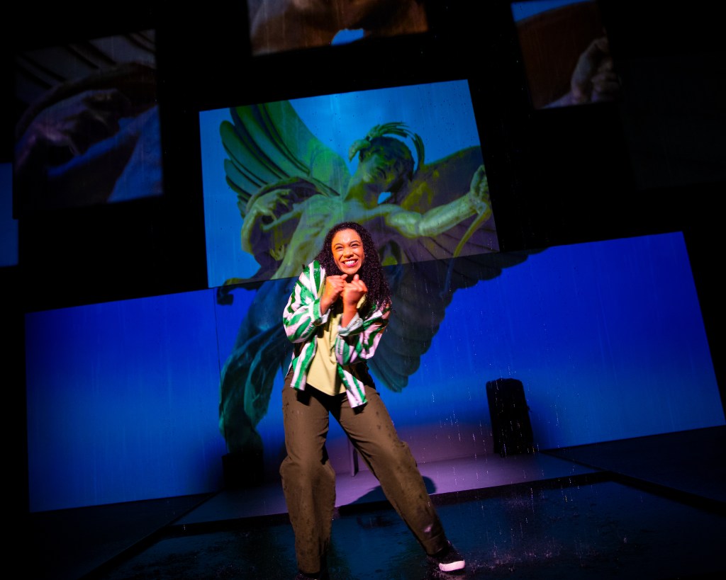 There is a powerful history that is discovered, boxed away in the dark, of all those activists and black heroes who came before, that, when unpacked, slowly hits home, radically and emotionally pure. The white walls begin to open up as the surreal voiceover interludes, beautifully projected by Laura Warren (Obsidian/Crow’s seven methods of killing kylie jenner) with a sharp sound and composition by Cosette “Ettie” Pin (Factory’s Hypothetical Baby), get closer and closer to her little white box designed superbly by Jung-Hye Kim (Studio 180’s Chinese Lady) and beautifully lit by Shawn Henry (Young People’s Theatre’s Truth). Those emotionally brilliant video voiceover formulations speak of all the radical reframings that spill out, giving meaning to togetherness, and the ability to change the world around us, through moments of bravery and compassion. They seem to get closer and closer to that shoebox set that was, at first, so confining, but has now become ever so wide open. “Connection is an act of rebellion“, we are told, and in Shedding a Skin, we feel the power of those Piccadilly Circus wings, that bow, and that arrow. They stand up for our inclusion, our care, our love, and our sense of community, infiltrating our hearts and souls with a rebellious handbag energy I didn’t know I needed. Just like Myah, it soaks us with its beauty, and we are forever changed by it.