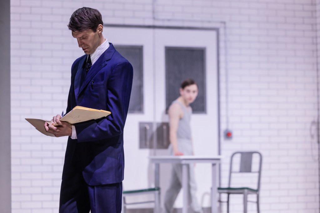 I should have known who this Henry character represents in the TV series, and although I don’t think it is required to stay tuned in, the knowledge, I believe, adds a layer of intrinsic connection to the whole unfolding. Henry is, most definitely, an odd one, tuned in more to his other world, 50s-model Captain Midnight portable radio that lets him listen in on non-programming, including his parents’ arguments from afar. Costumed purposefully by Brigitte Reiffenstuel (Donmar’s The Fear of 13), he cuts the outsider framing with ease, but we lean into his awkwardness and his disturbance with empathy and care. We feel for this troubled young man who is continually jolted by trauma and electricity whenever he finds himself interrupted by another, and that’s mainly due to McCarthey’s expert and enthusiastic embodiment.