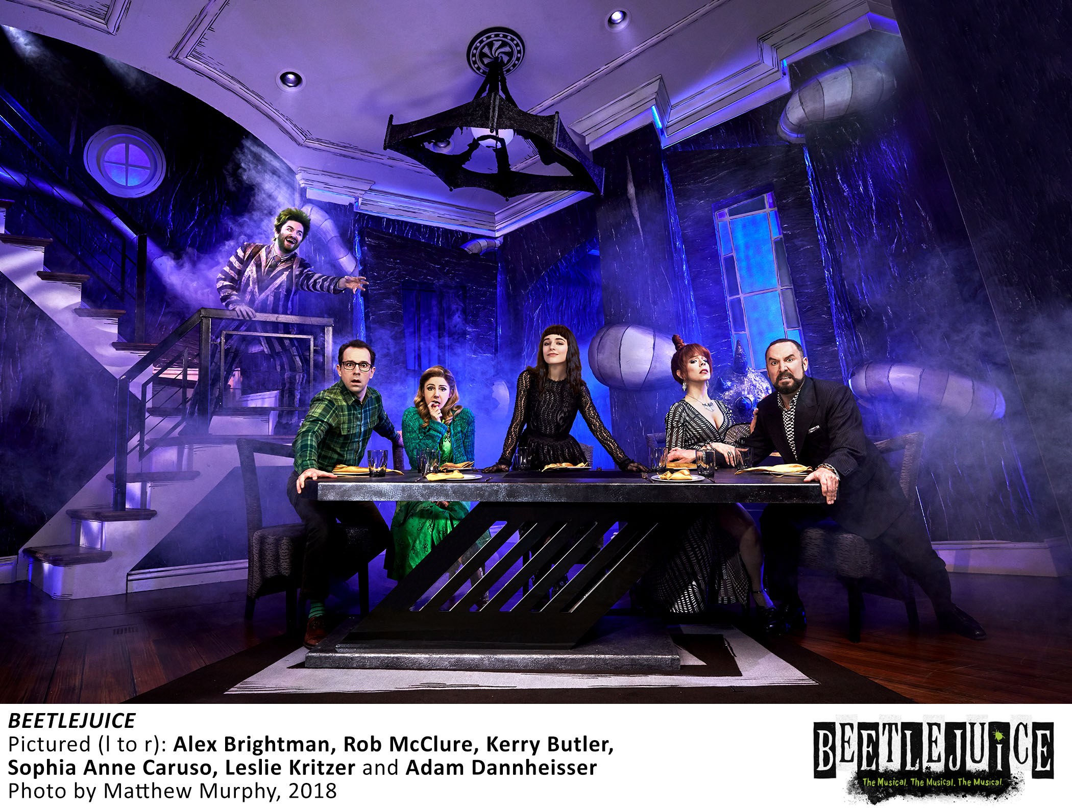 Beetlejuice, based on the 1988 Tim Burton film, is directed by Alex Timbers (Broadway’s Just In Time), with catchy and smart music and lyrics by Eddie Perfect (Strictly Ballroom, King Kong), a solidly funny book by Scott Brown and Anthony King (Gutenberg! The Musical!), with choreography by Connor Gallagher (Off-Broadway’s The Big Gay Jamboree) and music supervision, orchestrations, and incidental music by Kris Kukul.