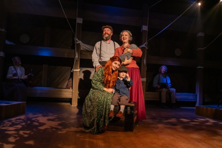 He sits, our musical bearer of time and place; a narrator of sorts, in the warm glow of memories, playing us most magically into the world premiere of The Wind Coming Over The Sea, a beautifully tender, unflinching look at the promise and peril of emigration, stitched together like a warm, personal quilt laid upon a heartfelt Irish folk song. Overflowing with emotionally engaging traditional ballads and live Irish folk music, this new work of clarity and compassion, written by renowned Irish-Canadian author Emma Donoghue (The Grand’s Room), overtakes the air inside the historic Blyth Festival‘s Margaret Stephens Stage at Memorial Hall with its infectious toetapping Irish energy and tender care, sailing across the ocean like love letters born on the backs of violin and song.