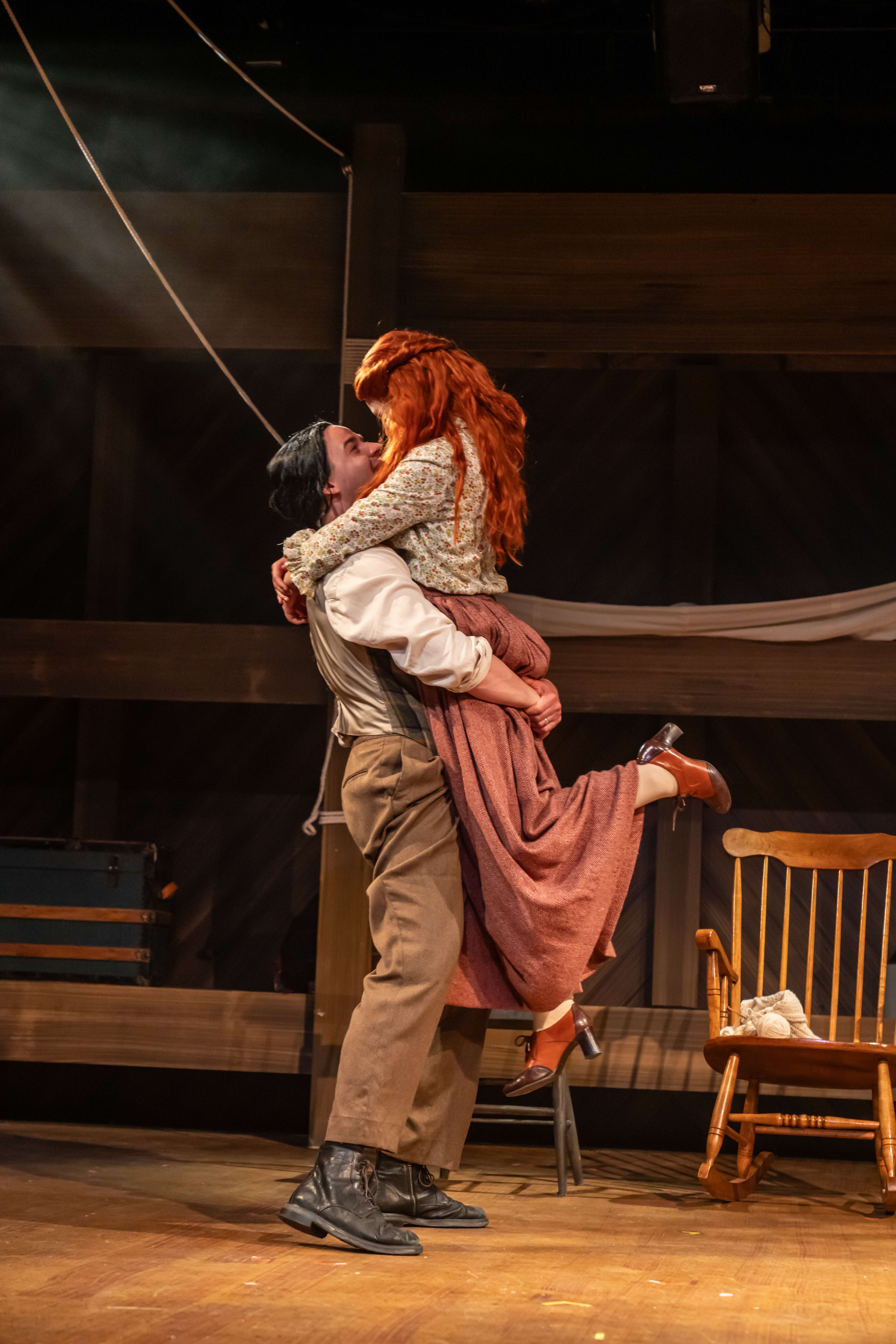 The show seeps into our skin, alongside these melodies, and as thoughtfully directed with love by the Blyth Festival Artistic Director, Gil Garratt (Blyth’s The Drawer Boy), the wind that comes over the vast and dangerous sea and beacons to these Irish folk to come, infuses and inspires this young adventurous soul to make the difficult decision to leave everything behind, including his family and devoted wife, Jane, lovingly embodied by Shelayna Christante (Toronto Fringe’s The Bluffs), and cross that same trecherous ocean in search of a new, and better life. It’s the heaviest of decisions for these two strongly attached souls to make, and we listen with love as they talk about the land where winter only lasts a few days, as the brochure says, supplying the brave optimist with just enough unfounded hope and truth to set his open-hearted sights on this faraway land.