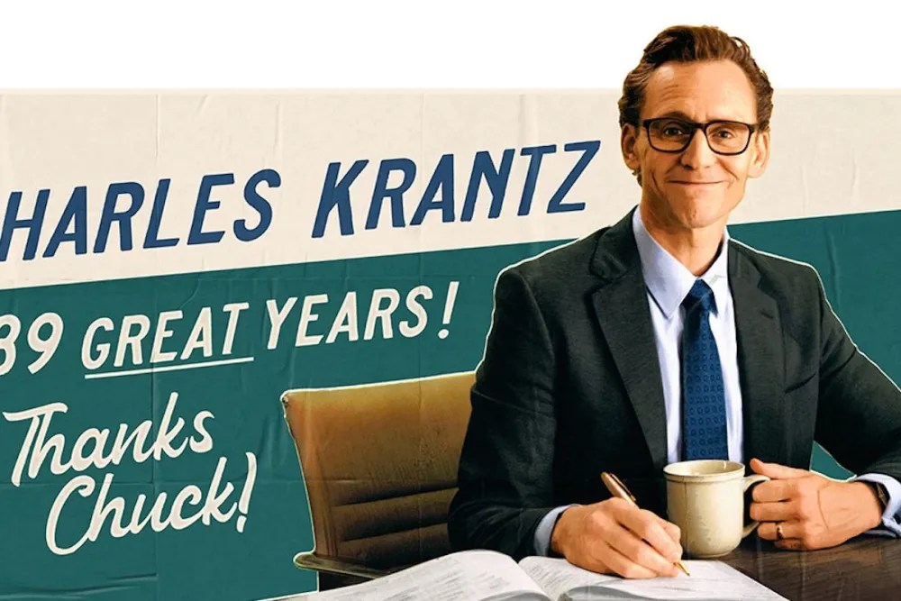 These posters, billboards, and TV commercials start to expand and replace windows to our souls and spaces, as our confused teacher walks the long way over to reform a bond that maybe should not have been broken. But it’s hard to tell. It’s an engaging, thoughtful chapter that really registers, making us curious about what came before and what the meaning of the darkening sky is. Then there is the darkening flick of a reframing, throwing us back into the middle chapter, “chapter two“, that finally introduces us to the everyman Chuck Krantz, accountant, father, and husband, played compassionately by a very connecting Tom Hiddleston (Broadway’s Betrayal; “The Night Manager“) who was haunting the world we had so thoroughly become invested in. Narrated fascinatingly by Nick Offerman (“Parks and Recreation“), who gets a wee moment in the prior segment to shine, the film’s generic voice delivers us into the other framing with ease, guiding us to find spontaneous connection with accountant Chuck and those around him, and to help start the process of unpacking what we just witnessed.