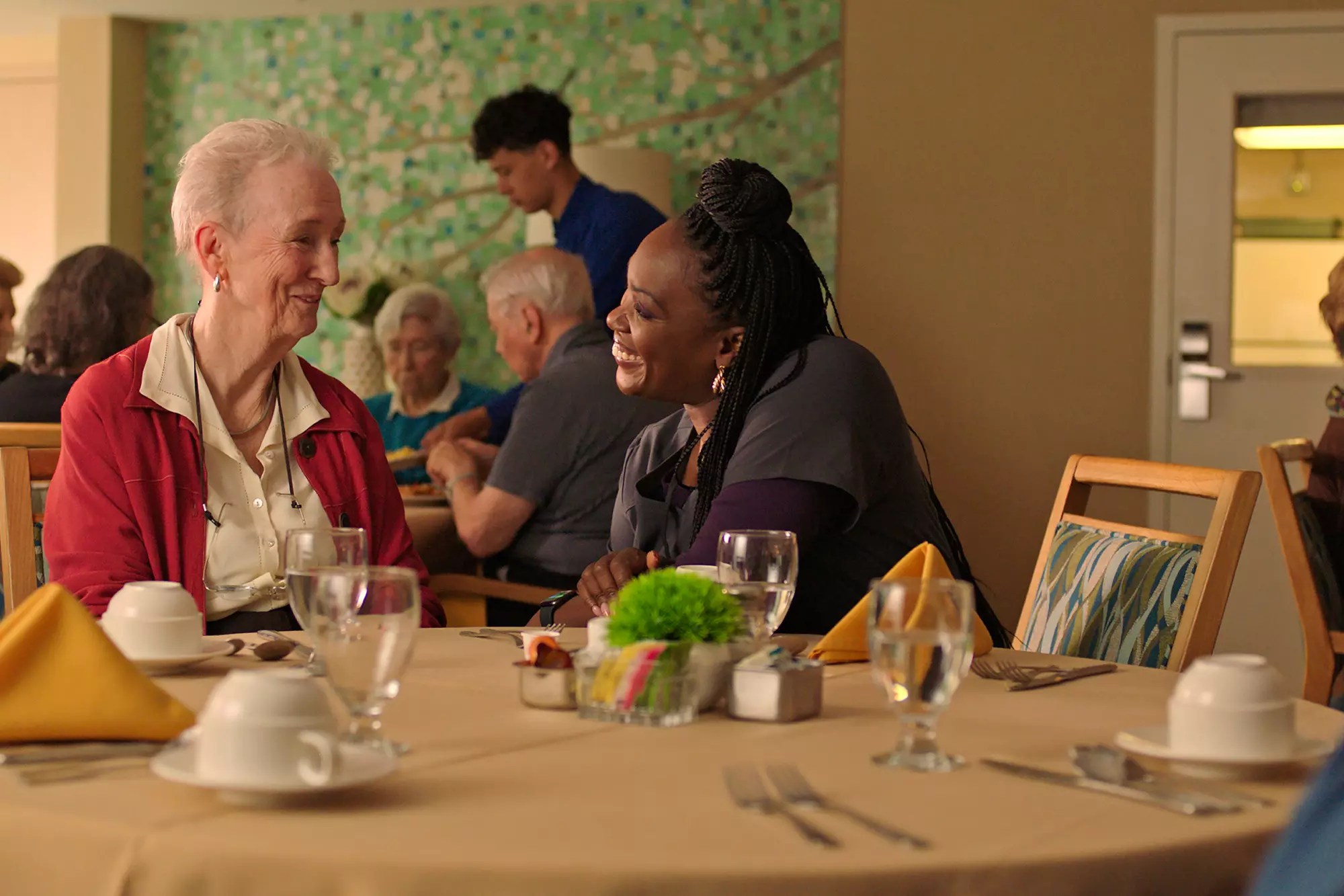 “You said you wanted to be here. You chose this place“, he says with all the care and empathy he has inside. This is what “Familiar Touch“, an achingly tender drama of quiet proportions, does best: navigating the unfamiliar hallways in her new life in the memory care unit of his geriatric country club and all that swirls around her like a luminescent fog. She waits, impatiently, for a menu to be handed to her at her first breakfast, thinking she is at some sort of resort, but slowly and carefully, we watch and breathe in her newfound experience as the subtle elements of her days unfold. There are no over-the-top emotional entrapments, like we might expect in a film like this, just quiet discrepancies and rewindings in her imagination and memories. And in that floating space, we discover profound engagement and connection.