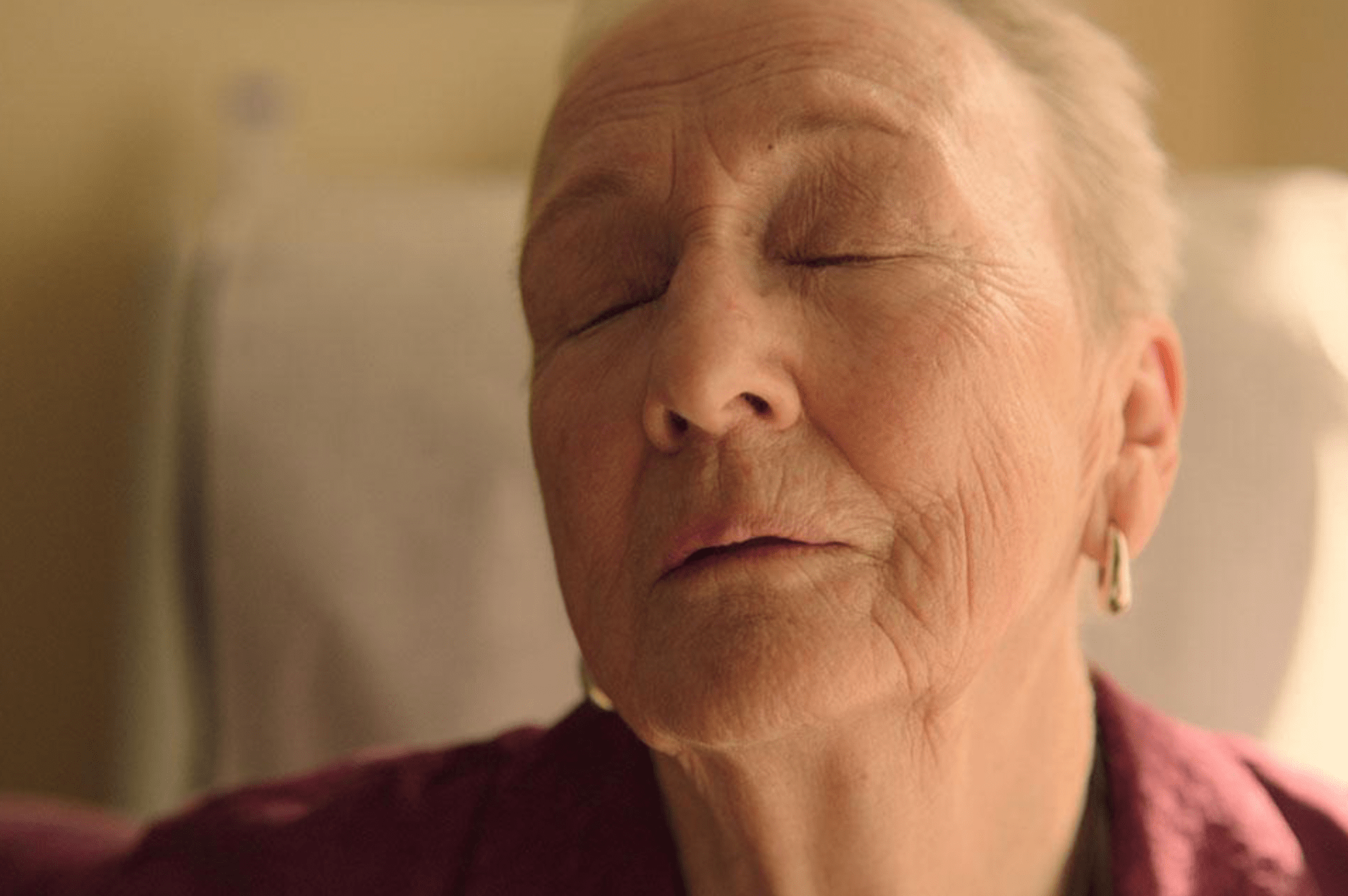 “Ruth, it’s time to get out now…” and we are there with her, floating and feeling for her. It’s the tenderest of spaces, reserved for Chalfant, who delivers a dynamic, quiet perspective that keeps us tuned in, even as the film wanders the hallway a bit, rather than firmly guiding us somewhere specific. It’s not about the endpoint, but the changing dynamic that Ruth must find her way through as she gradually fades slowly away. The interactions between her caregivers, as “Familiar Touch” approaches its final act, give the piece its emotional clarity and weight, and its captivating finality. But it’s that almost final image of Steve and Ruth dancing in the halo of memories almost lost that provides the film its gentle denouement, leaving us feeling compassion for her and the changing world that swirls too fast around her. She is left behind, lost in passive thought and a growing fog of memories, yet carrying an intuitive understanding of the love and care that once existed, reflected silently in the rear-view mirror.