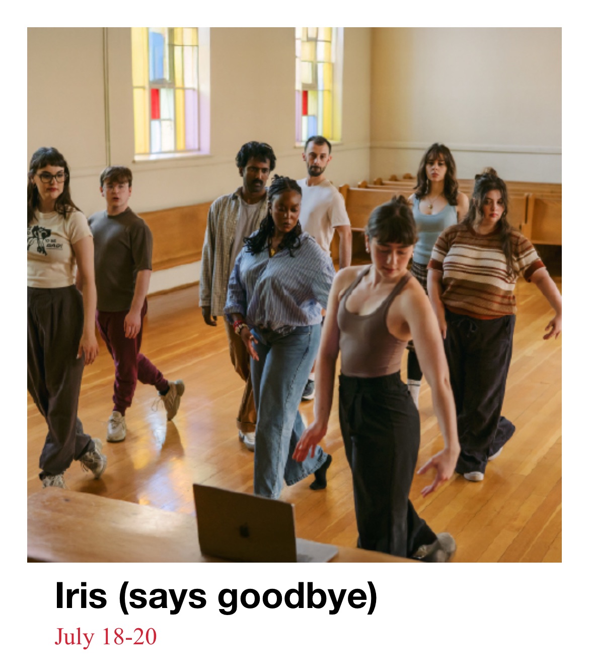 Pick one!” she is told, after the last option unwinds itself before her. And we hold our breath, waiting to see what this Outside Iris is going to say and do. They want her to feel like she has some agency in the process, but “What does it really mean?” you might ask, alongside Outside Iris. That’s one of the many really delicious dimensions of Iris (says goodbye). It leaves you leaning in, as breathless as one might get, wondering if the flight you have been anxiously waiting for is being cancelled or if this is just another gate change announcement for a destination unknown. Iris (says goodbye) was the last show of a really compelling Best of Fringe weekend brought to life by TO Live and the Toronto Fringe Festival. Every seat was taken for this last performance, and I can completely understand why this Best of flight was full. It really is that good! Saying goodbye to Iris is the most grand and gorgeously high way of ending this festival, and I’m pleased as punch to find myself waiting alongside her for the Company formulation to uncover its eventual fate and destination.