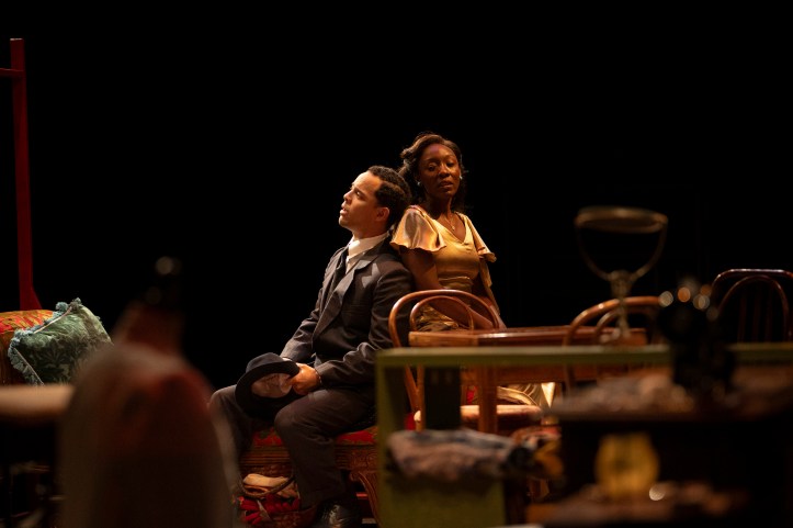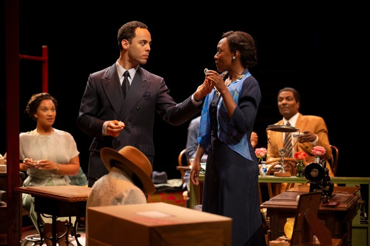 In many ways, this is a play about the singer Angel Allen, usually portrayed by the vibrant actor, Virgilia Griffith (Crow’s Rosmersholm). But in the performance I attended, the part was bravely embodied by Kiera Sangster (Shaw’s One Man, Two Guvnors) with a script in hand and a fierceness in her heart. Holding as tightly to dreams against an avalanche of social change that isn’t coming fast enough for many in these adjoining rooms, the play strides forward with power and determination. It’s difficult to fully take in how this production would feel with the intended lead occupying the central figure of Angel. Sangster is definitely sharp and defiant, forging forward with guts and determination in her vivid framing, but holding a script does slow down the rhythm of Cleage’s words, leaving the Harlem rhythms hanging just out of reach.