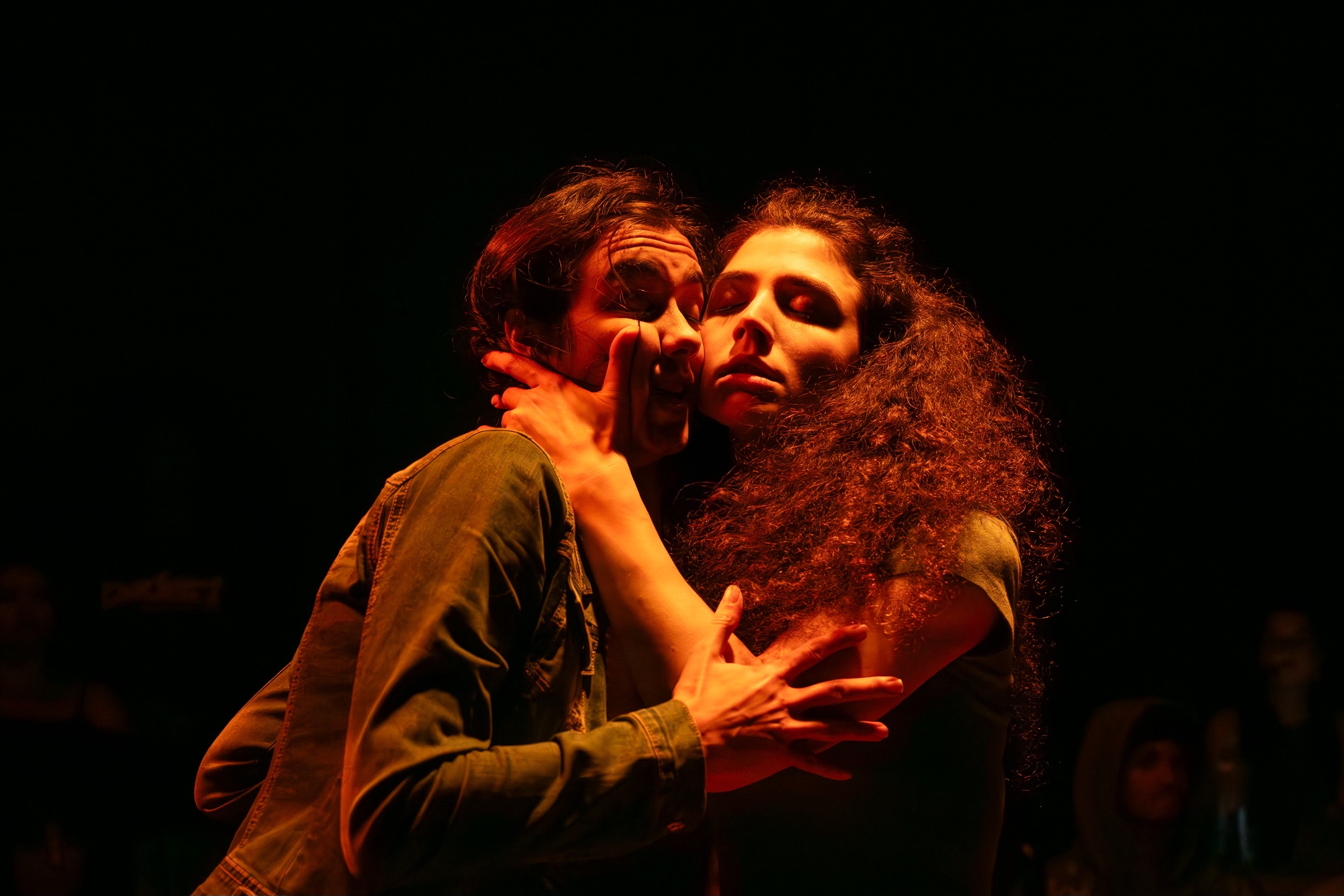 One of Blood Orange’s strengths is its depiction of the power of imagination in young adults straddling the line between stuffed animals and driver’s licenses, and Maria Müller, Ana Moioli, and Giorgia Valenti each create unique expressions of teen anxiety. Müller is as scary and unpredictable as Faye, the attention-craving cult leader. Moioli’s Eden is a daffy but unsettling creation who packs an excellent stage punch. Valenti plays a conventionally popular girl with an inchoate quality that makes us fear for her. And Doreen Oliver is startlingly effective as Faye’s much-discussed but little-seen mother, Mariah—her shock entrance elicited an actual shriek from the audience.
