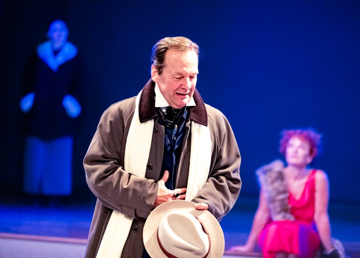 The multimedia approach is put to particularly good use in the character of Firs, the aged manservant played by John Christopher Jones and who appears exclusively on film. Firs has the strongest attachment to the old aristocracy, and is abandoned at the end of the play, forgotten somewhere in the old house. It’s a haunting performance, made even more poignant by Jones’ death earlier this month.