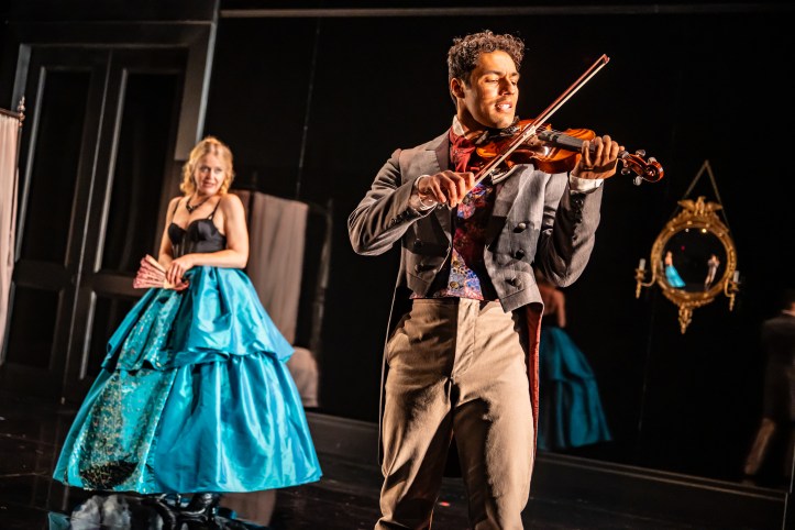 “I’m not sure, Mistress,” says the strong, handsome, and gifted Phillip, played provocatively by the smartly dense and desirous Sébastien Heins (House&Body/Crow’s Measure for Measure) to the heated Alana, portrayed magnificently by the exacting and irreplaceable Amy Rutherford (Soulpepper’s What the Constitution Means to Me). Rutherford almost steals the show in her duality of being, but it’s their equally fraught dynamic that is the power, punishment, play, and pleasure of the piece, all bleeding into one. Ultimately, these four actors deserve their own coda, a deeper resolution that the script doesn’t quite provide. They are ultimately left a little out in the cold after self-combusting like a stepped-on landmine before our very eyes. Still, they make the chaos feel essential and universal, pushing the show’s psycho-sexual warfare into real emotional terrain.