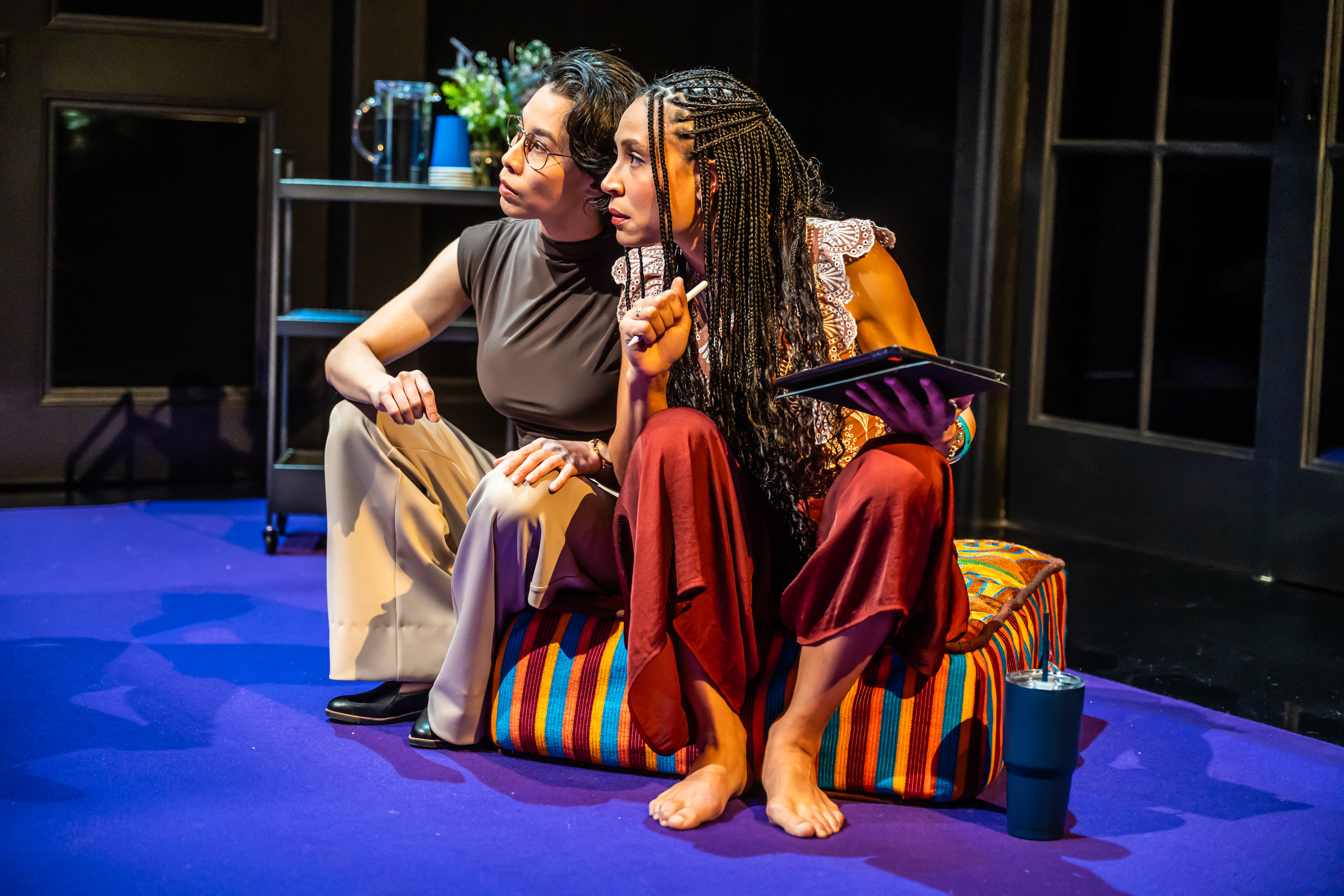Throughout, we’re kept deliciously off-balance. What exactly are we watching? A re-enactment? A fantasy? A therapy session gone rogue? The play constantly shifts beneath our feet, forcing us to question our responses as the power dynamic flips, burns, and reforms. In one moment, we laugh nervously at the “processing” language spilling from the mouths of Teá and Patricia, played with brilliant tonal control by Beck Lloyd (Stratford’s Grand Magic) and Rebecca Applebaum (“Paying For It”), and in the next, we’re wincing under their watchful eye as the psychoanalytic jargon crashes into centuries of trauma and resistance. Harris never tells us how to feel; he just keeps turning the mirror, and with every reflection, we see something new and unnerving in ourselves.