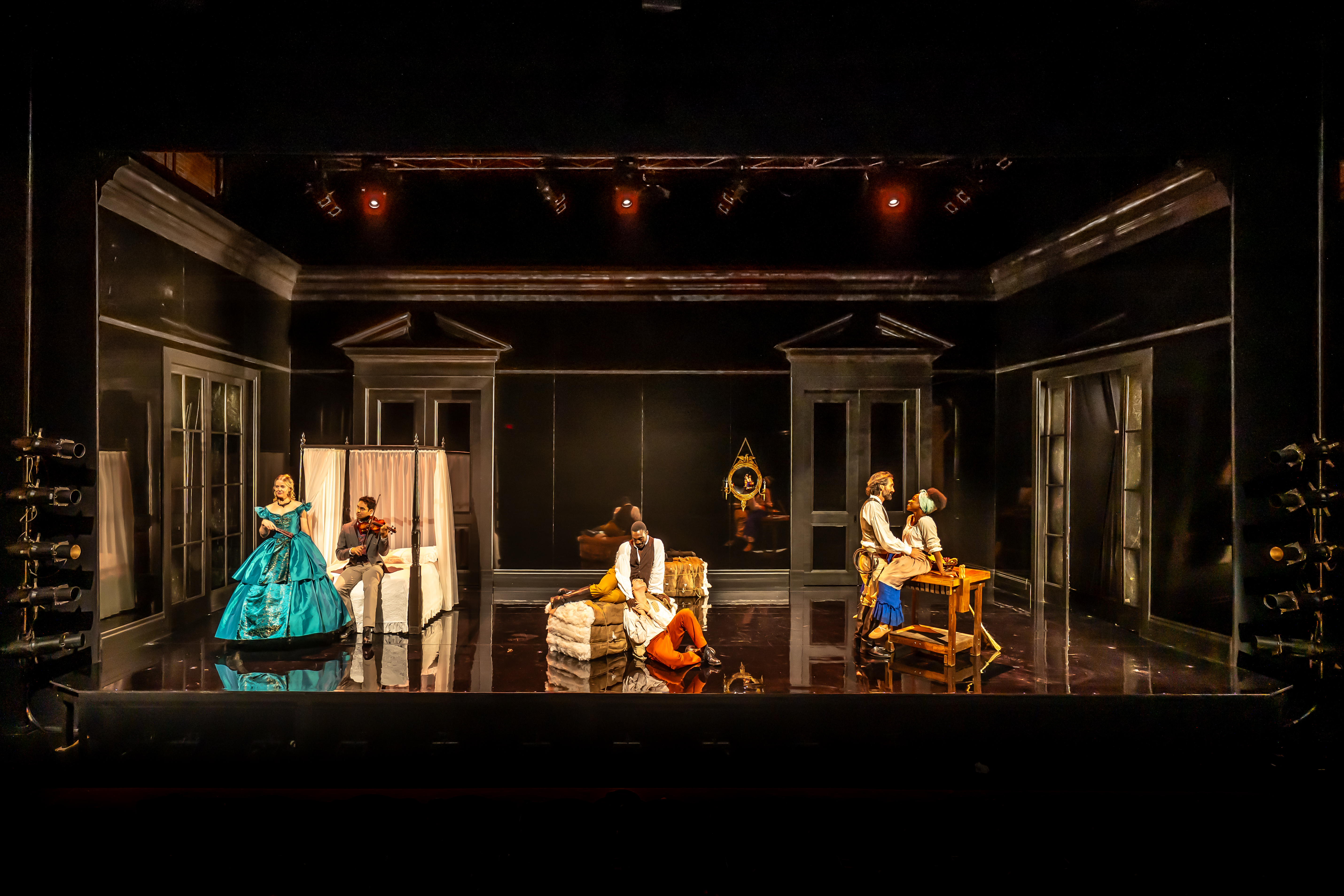 Visually, Laffrenier’s Slave Play vibrates with an insanely hypnotic tension. The inventive scenic design by Gillian Gallow (Shaw Festival’s Major Barbara) places us in a plantation dreamscape that morphs and melts under Daniel Bennett’s feverish lighting (Grand Theatre’s Cabaret). Rachel Forbes’s costumes (CS’s Fairview) move fluidly between periods, while Thomas Ryder Payne’s sound and original music (CS’s Is God Is) give us the literal crack of the whip, echoing deep inside the subconscious. The movement and intimacy direction by Anisa Tejpar (Crow’s Earworm) is both confrontational and careful; sensual yet strategic, guiding the actors through territory that feels authentic and genuinely dangerous. Inside all this artistry, Slave Play frames a performance environment where the actors can bare themselves completely, both emotionally and physically.