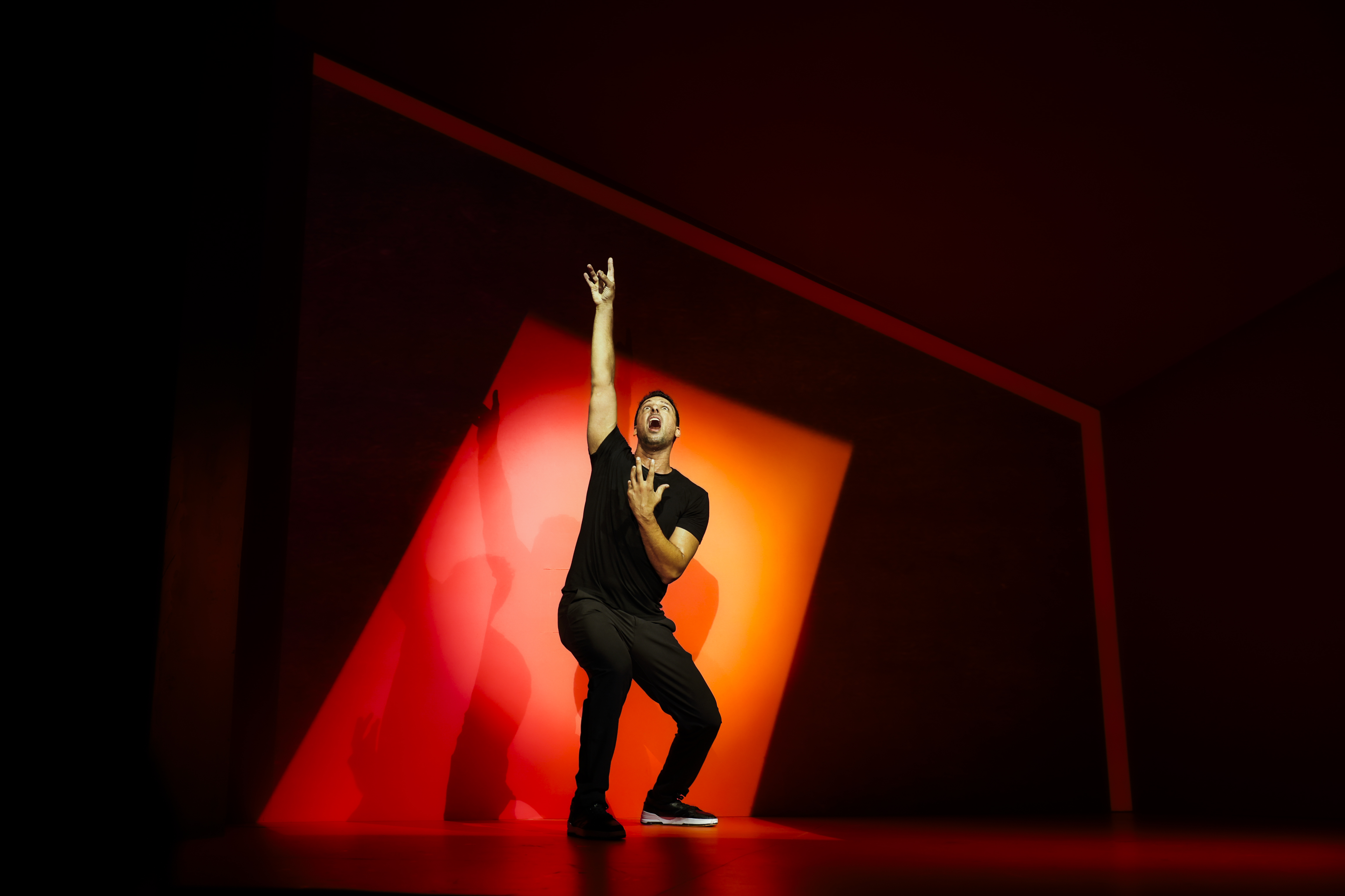 The production at the Greenwhich House Theater has the intimacy of a late-night confession and the theatricality of a high-wire act. Yet director Taccone wisely keeps the staging simple, giving Stachel only a chair, a projection, and a shifting light to let him deliver his restless physicality and vocal dexterity to the room. Scenic designer Afsoon Pajoufar (PH’s Practice) and lighting designer Alexander V. Nichols (Carrie Fisher’s Wishful Drinking) subtly shape the psychological terrain, while Madeleine Oldham’s sound design gives crafted texture to the show’s interior chaos and discomfort.