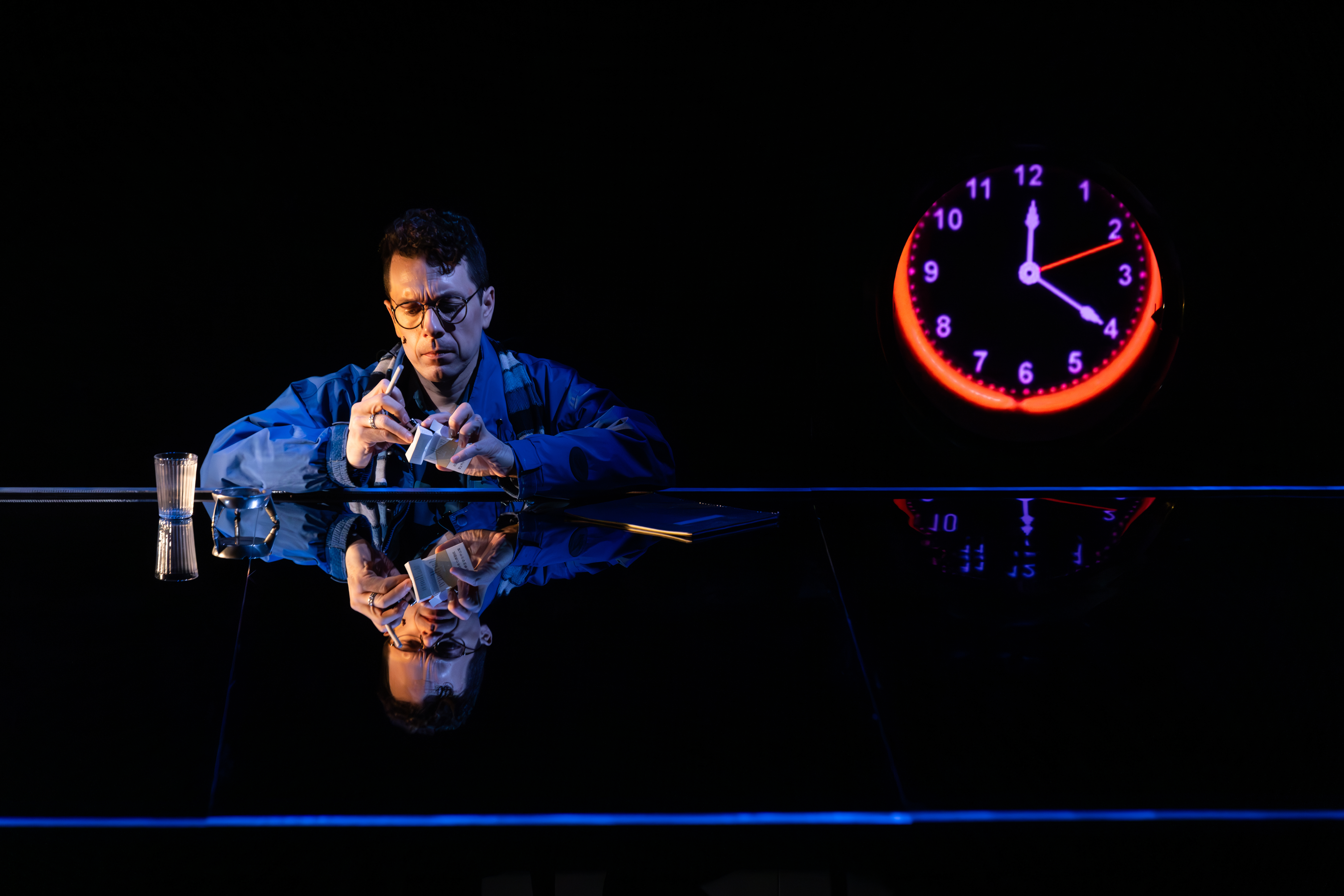 Even when the play finally nods toward its philosophical thesis, the intersection of narcissism and space exploration, it feels too late and too feeble. Philippe’s trip to Moscow, where he arrives too late to deliver his speech due to a time-zone mishap, should feel like a turning point or revelation. Instead, it lands as a clever distant idea about melancholy: the ache of missed connections, and the sorrow of human smallness against the infinite. Yet, what remains is an academic exercise in wonder in a long line of disconnected ones. The moment is stripped of its heart and fails to conjure up an emotional response. At least to this theatre junkie. I had already checked out by that point in the show, struggling to resist the urge to check the time on my phone (my neighbor next door checked it regularly enough for me to keep track of the minutes ticking forward), and even though the piece’s larger ambitions about ego, mortality, and cosmic meaning are present, displayed in the artistry, they never unite into a dramatic whole.
