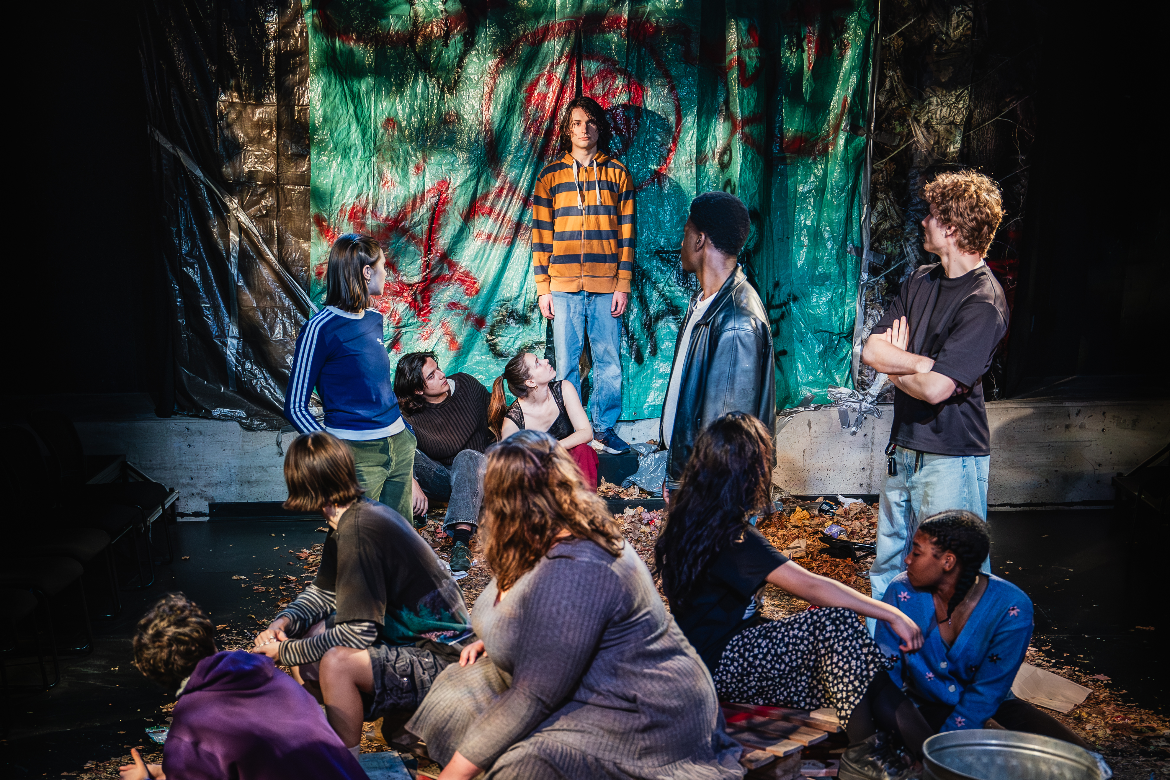 If The Comeuppance exposes the fault lines of adulthood, Icarus Theatre‘s DNA, magnificently directed by Erik Richards (Coal Mine’s Dion), investigates the origins of that fusion and fracture. The stark and unsettling play, written explosively by Dennis Kelly (Girls and Boys), traps ten teenagers in the aftermath of a terrible accident. A prank gone terribly wrong during a wild night of hilltop partying leads to the apparent death of a classmate, and the group, in their panic, chooses concealment over truth. They think first of personal survival, not of conscience. What follows is a portrait of moral disintegration; young people discovering the seduction of denial and the corrosion of consequence. Richards directs with a tight clarity, letting Kelly’s writing carry its own quiet menace up the hill and into the night air. The production’s sense of pace is remarkably taut and unrelenting, yet there is a solid attention to the small, human hesitations and personal needs and fears that make the story whole.
