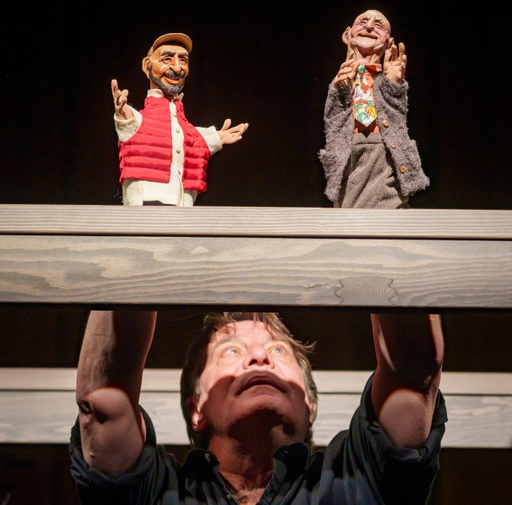Having lived and grown old on the street, Joe spends his evenings sitting on the same bench with his companion, looking at the stars and feeling just how lucky he has been. Most people would pass by this gentle soul with nary a glance or thought, but Burkett (Little Dickens), the creator and performer of Wonderful Joe, asks us to stop and lean in, to really look and see what Joe sees. In this small miracle of a show, now running on the Grand Theatre’s intimate Auburn Stage and brought to life by his Theatre of Marionettes, the world of Joe opens up vividly. We see the crumbling world through the eyes of an aging gay man whose imagination refuses to fade, even as his home and history are being paved over for sparkling condos. It’s funny, rough-edged, and gorgeously kind, unpacking a portrait of survival and optimism woven in simple strings and light.
