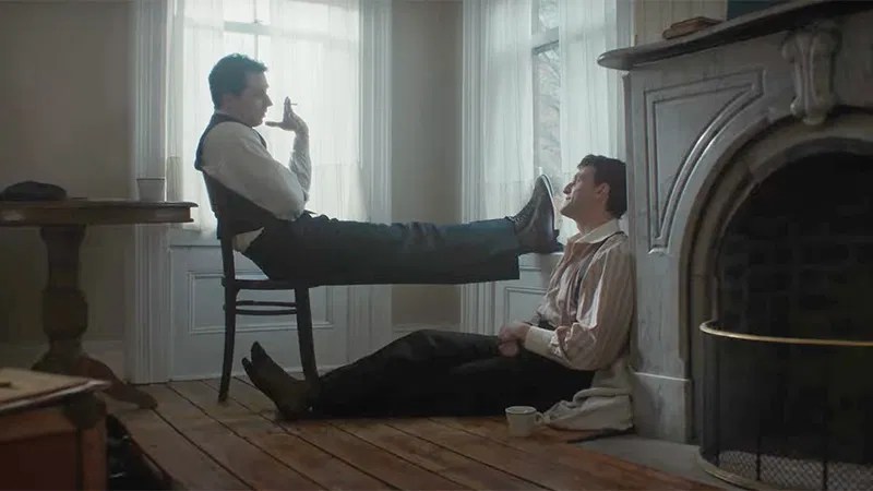 When David returns from the war, still searching for steadiness in a world reshaped by violence, he invites Lionel to join him on a “song-collecting” journey through the backwoods of Maine. Their task is deceptively simple: knock on doors, sit at rural kitchen tables, and travel the American countryside, gathering folk songs and capturing them on wax cylinders. They are the voices and melodies of a country still learning how to hear itself, but they are only the backdrop; the true music of the film is the way these men look at one another, the way they lean into silence together, as if trying to decipher the sound of their own hearts. And in their wandering, the journey becomes something far more intimate, a quiet love story that blooms with a casualness achingly rare for its time. Their affection deepens mile by mile, taking shape in the quiet darkness between towns and in the songs that shadow their long walks. It feels as natural as breathing.