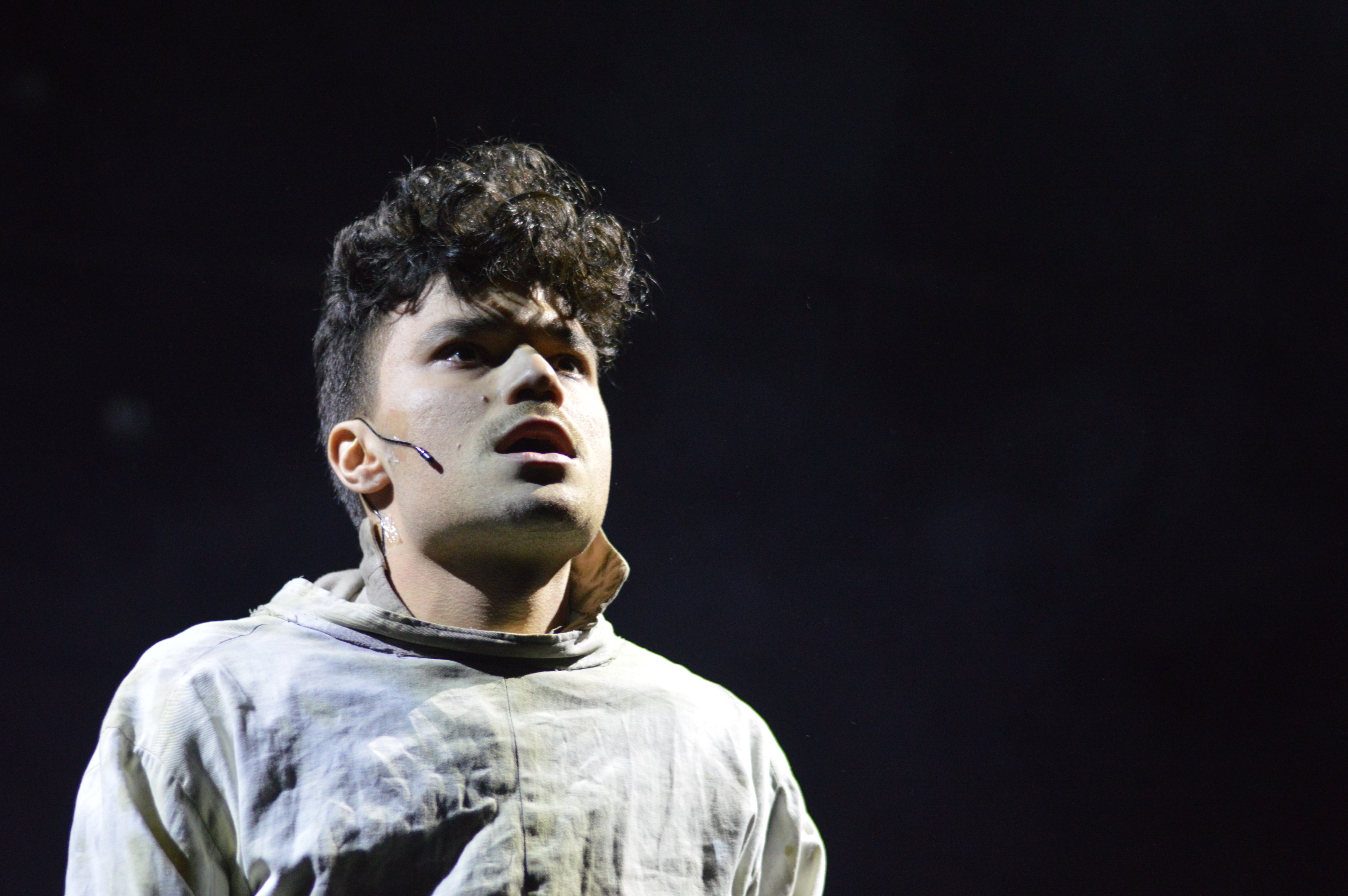 With the stage designed by Luka Thurlbeck, the cast ascends into the darkness, creatively lit by Connor Price-Kelleher (Alumnae’s Pretending), bringing that thick sound forward and engulfing us in its menace, even with an unfortunately problematic and inconsistent sound design. The second-level playing field tends to crowd itself during some moments of engagement, particularly the scenes that focus on Johanna, played with compelling nervous energy by Michelle Chew (Bowtie’s Fun Home), and Anthony, played handsomely and tenderly by Nolan Rush (White Mills’ The Tales of the Grotesque). Rush has a wonderfully smooth, tender vocal quality that suits Anthony beautifully, and his chemistry with Chew’s tightly wound, birdlike Johanna was genuine and sweet, although there were moments when we struggled to understand those impressive lyrics. Rush also seemed a little unsure of his physical life onstage, particularly in Act II’s “Johanna” sequence (one of my favorite moments), where he occasionally drifted out of his light or rocked in ways that felt more nervous than intentional. None of this diminished his musical performance, which was impressive; it simply felt like an element of stage comfort that will strengthen with time.