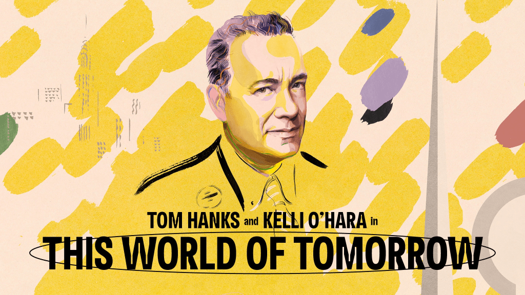 Quietly charming and deeply nostalgic, This World of Tomorrow, a new play written by and starring Tom Hanks alongside writer James Glossman, is premiering in high gloss at The Shed. It delivers a warm slice of nostalgia pie that is easily taken in and digested with a strong cup of coffee and a just a dash of cow’s milk. ‘Yes, really‘, says the past to the future, and directed with careful restraint by Kenny Leon (Broadway’s Our Town), this theatrical unwrapping feels like a pleasant time-bending romantic fable filtered through the DNA of movie-star Hanks’s own filmography. At its heart, it is a gentle, old-fashioned love story, less about paradoxes and plot mechanics than about longing, regret, and the human impulse to reach backward in time to correct emotional missteps. If the play occasionally moves at a leisurely pace, it does so intentionally, asking us to settle in rather than lean forward.