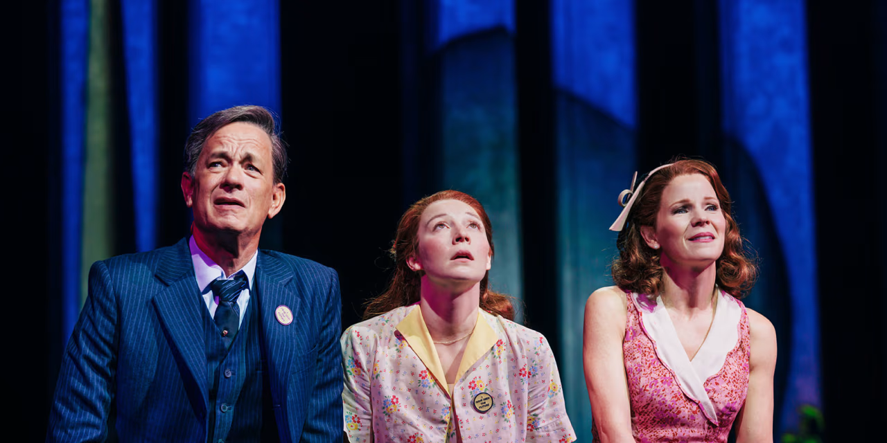 And that speed works, for the most part, even when it tests our patience and our attention. Mainly set across two timelines: 1939 and 2089, with one quick rainy detour to a Greek diner in the late 1950s, the play’s central conceit follows Bert Allenberry, played exactly how you’d expect from Hanks (“You’ve Got Mail“), a disenchanted wealthy scientist from the future who repeatedly returns to one perfect day at the New York World’s Fair in Queens. The device is clever and emotionally legible, though the depiction of the future itself feels oddly pared down and unimpressively flat. The high-concept elements, all those statistics, phone calls, and the presentation of ELMA, the External Learning Machine Associate, are addressed with a simplicity that drains them of interest, leaving the “world of tomorrow” feeling less vivid than the past it yearns for. By contrast, the glossy scenic design by Derek McLane (Broadway’s Moulin Rouge!) is far more evocative in its rendering of the past, grounding the play in warmth, texture, and the always present romantic idealism.