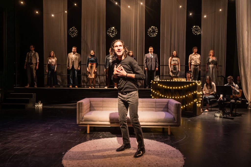 Two men enter quietly. One takes his place at the piano, the other at center stage. As a radio dial searches for a familiar frequency, snippets of static and melody drift in and out. Fragments of loneliness are carried in the night air, as Stephen Sondheim’s Company finally tunes itself into focus. With only a piano and violin supplying the score, Talk Is Free Theatre’s production at The Theatre Centre begins with an intimacy that feels deliciously deliberate and deeply inviting. The city hums around these characters, demanding to be heard, as couples gather and Bobby answers their plea for engagement with a simple yes. And in that solidly crafted celebration, this production, helmed by director Dylan Trowbridge (TIFT’s Cock), brings into focus this splendid stripped-back revival that feels warm, immediate, and decisively alive.