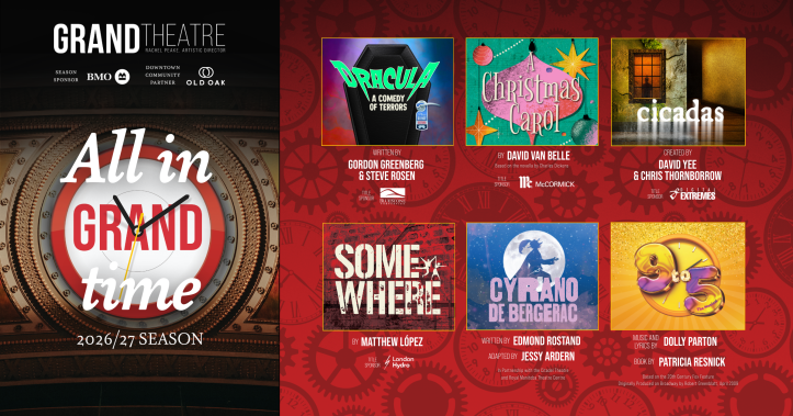This week, the Grand Theatre announced its 2026/27 season, titled All in Grand Time. The upcoming year marks Artistic Director Rachel Peake’s third season leading the company and an extraordinary milestone. The Spriet Stage enters its 125th year of live performance, a remarkable run for one of Canada’s oldest continually operating theatres, and I’m proud to call it my hometown theatre.
