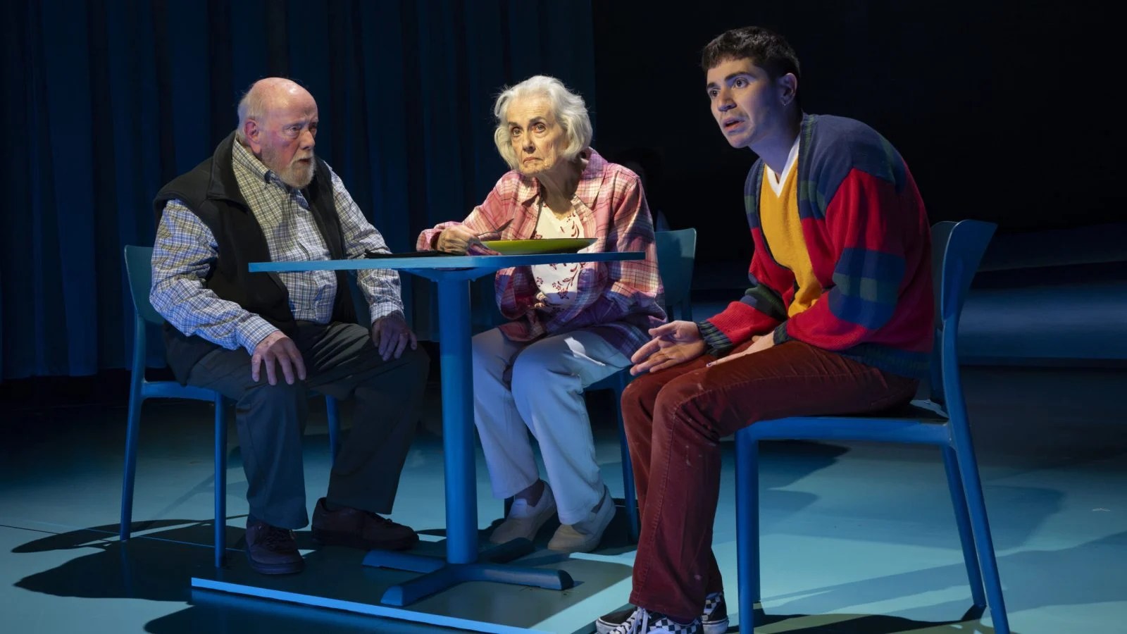 Thankfully, Josh is not left alone inside this storm of thoughts. Brasch wisely surrounds him with a wonderful company of performers who bring both humour and emotional weight to the story. The fantastically gifted Matthew Saldívar (Broadway’s Junk) moves through multiple roles with an appealing ease that keeps the play lively, thoughtful, and engaging, while Chip Zien (Broadway’s Harmony) gives Grandpa Shrimpy a gentle sweetness that quietly anchors many scenes with his desperation and need, without any of them slipping into the saccharin waters. Peter Maloney (ATC’s On The Shore of the Wide World) brings a complicated but wondrously wounded presence as Josh’s other grandfather, a man struggling with forgiveness and the limits of patience against a sea of grief and sadness. Together they create a portrait of family and friends that feels messy, loving, and deeply human.