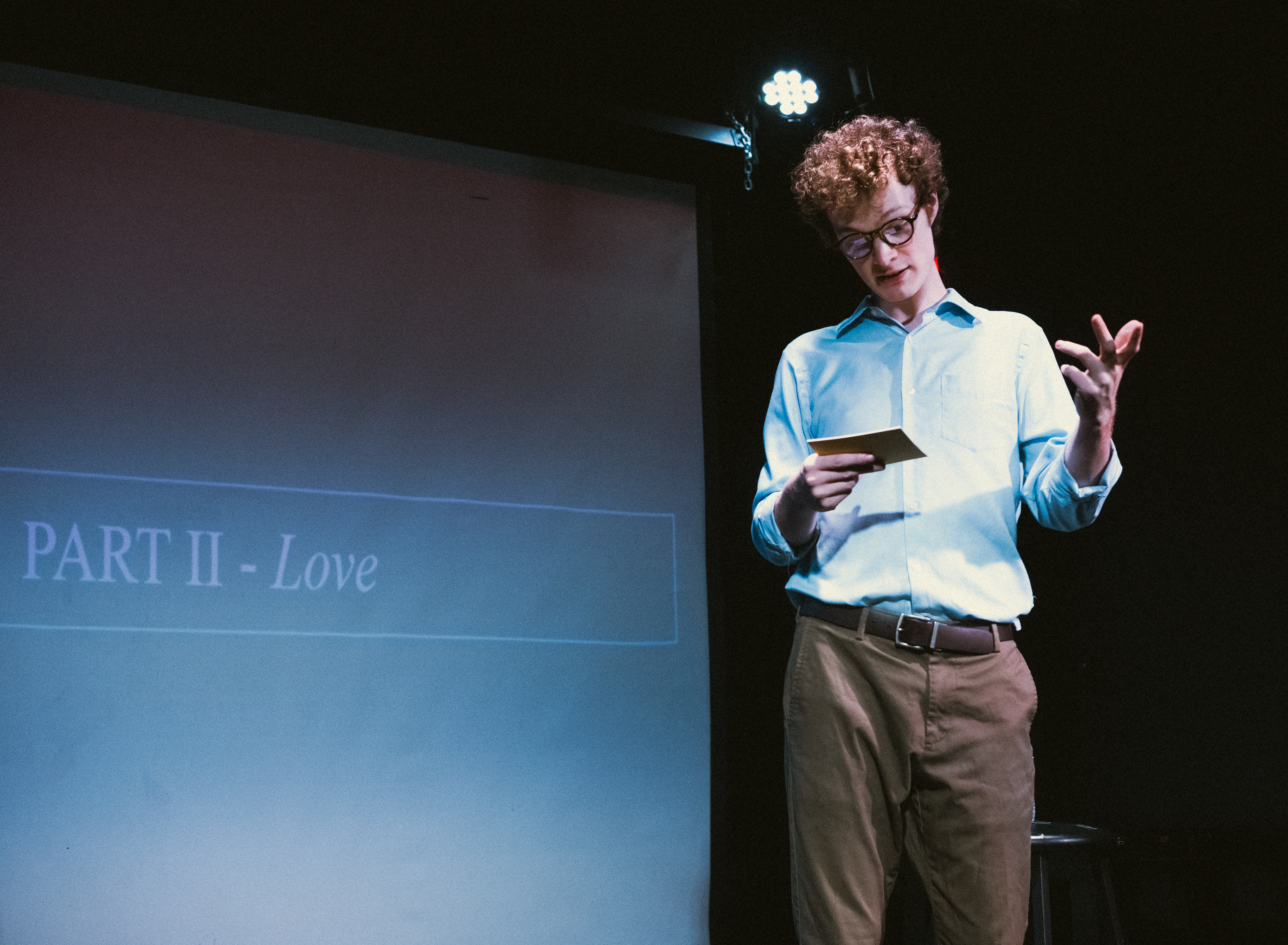 A meta theatrical solo performance where former English undergraduate, Walter Schlinger, candidly shares a live reading of his senior thesis. This is a desperate attempt to share his work and make it the best it can be. It’s a delicate play that grapples with themes of youth, transition, and validation. Walter reckons with the role our mentors play in our development while dissecting his changing relationship to the world around him.
