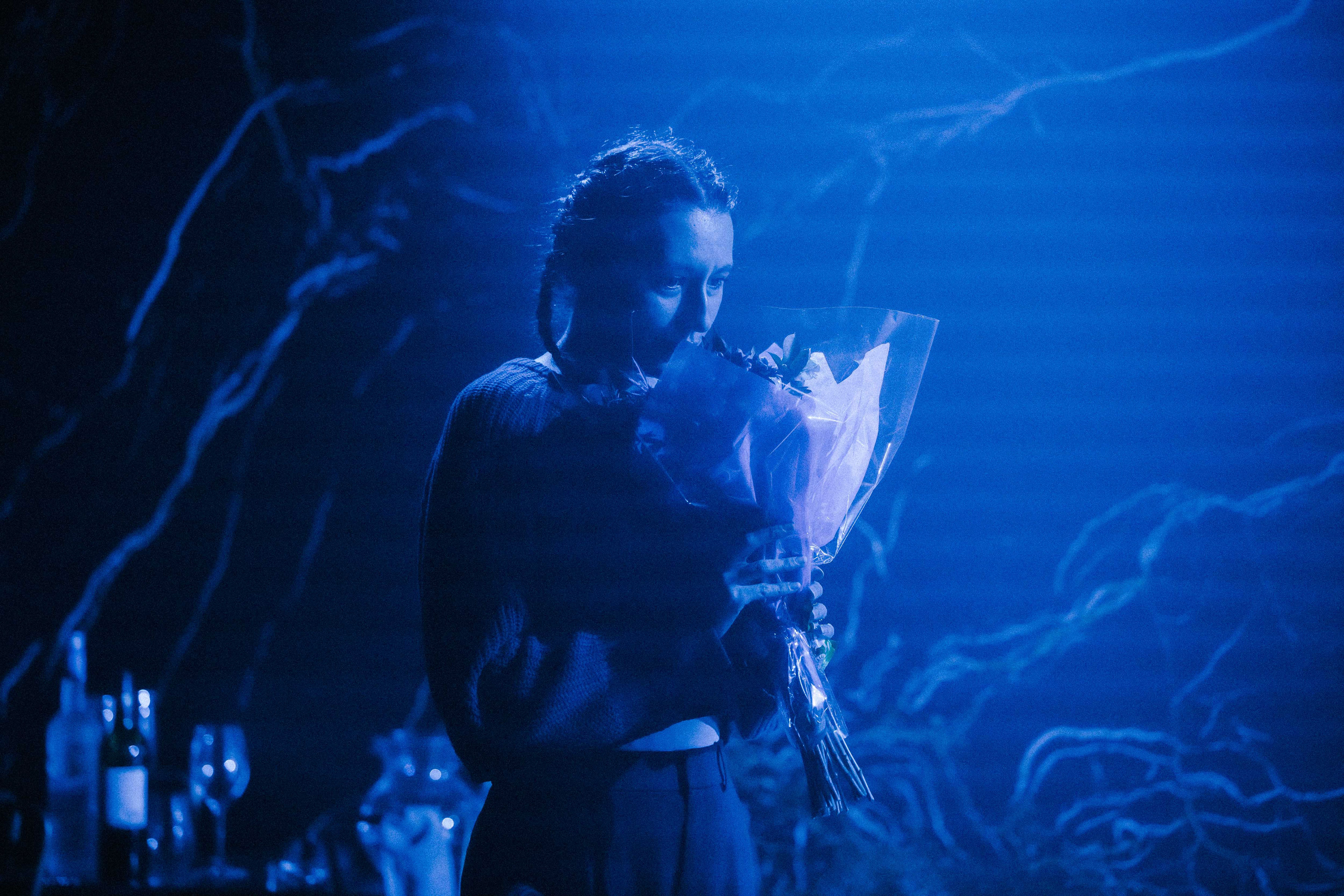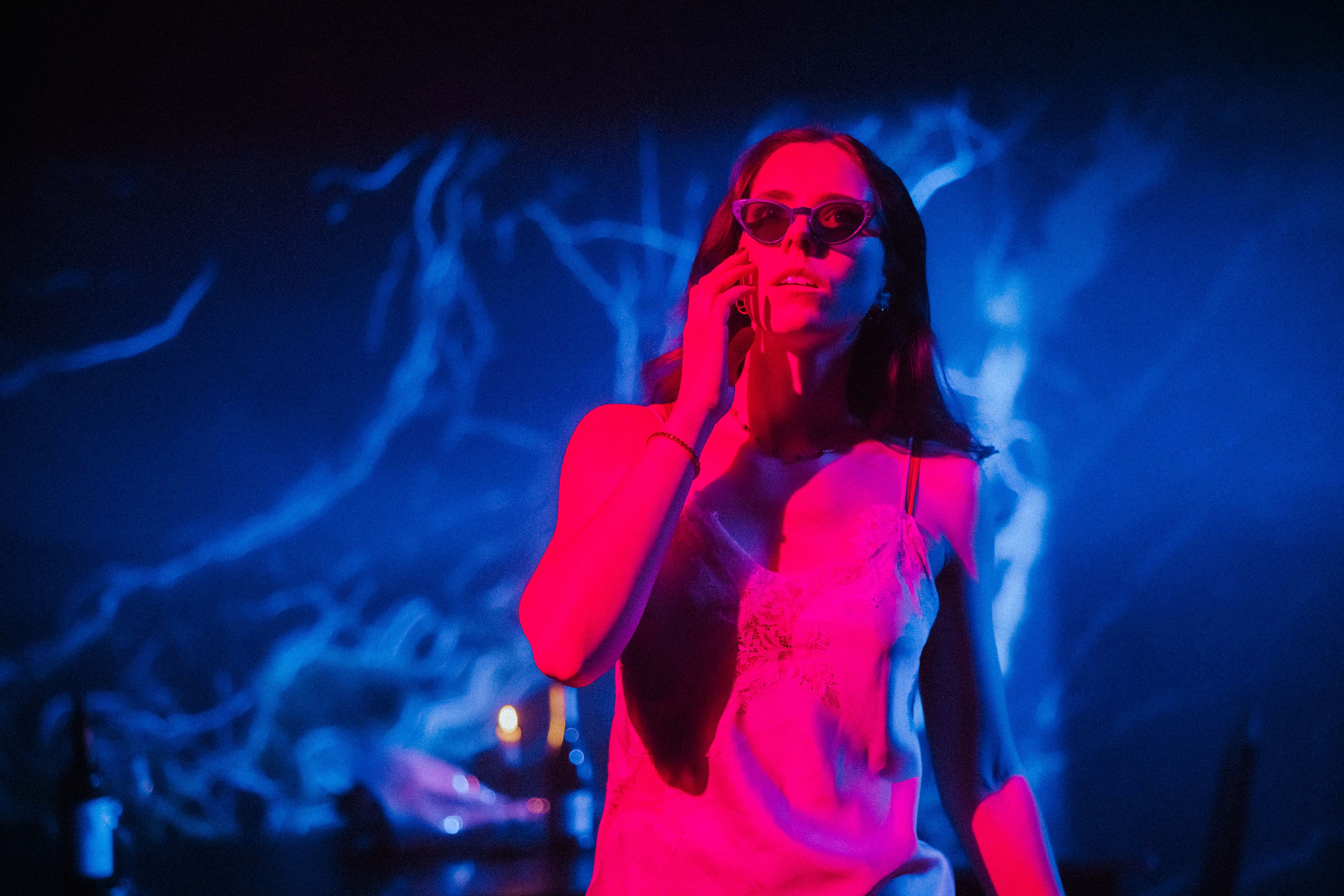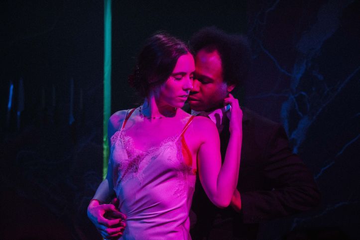 This imbalance extends into the broader world of the play, which struggles to fully define the forces pressing in on these characters. The modern elements, including the presence of technology and the ambiguity of place, suggest a re-contextualization that never quite settles into clarity. Julie’s rebellion against her unseen father carries thematic weight, though there is a vacuum there that the production does not entirely seem to know how to fill. Her provocations, her fainting spells, her need to shock and destabilize, all gesture toward a deeper rupture, but often land as surface actions rather than manipulated expressions of something more deeply rooted.