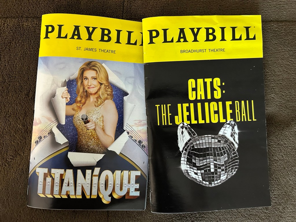 “Hello, kittens,” is the greeting that started my two-show Saturday, and I knew from that first moment I was in for something beyond special. I was being gifted with the chance of seeing Cats: The Jellicle Ball in the afternoon and Titanique that evening. And the moment I stepped into the ballroom that is the Broadhurst, and saw the disco ball cat head rotating on all those screens around me, I could hardly contain my excitement. In one theatre, the kitty cat disco ball seemed to promise charisma and divine delight. In another, it was the iconic heart-shaped diamond of the Ocean spinning slowly overhead as if Céline Dion herself had personally decided we should all bow down to its glory. Nothing was subtle in these arrivals. They were royal announcements of the highest order. Their Broadway was not interested in traditional restraint.