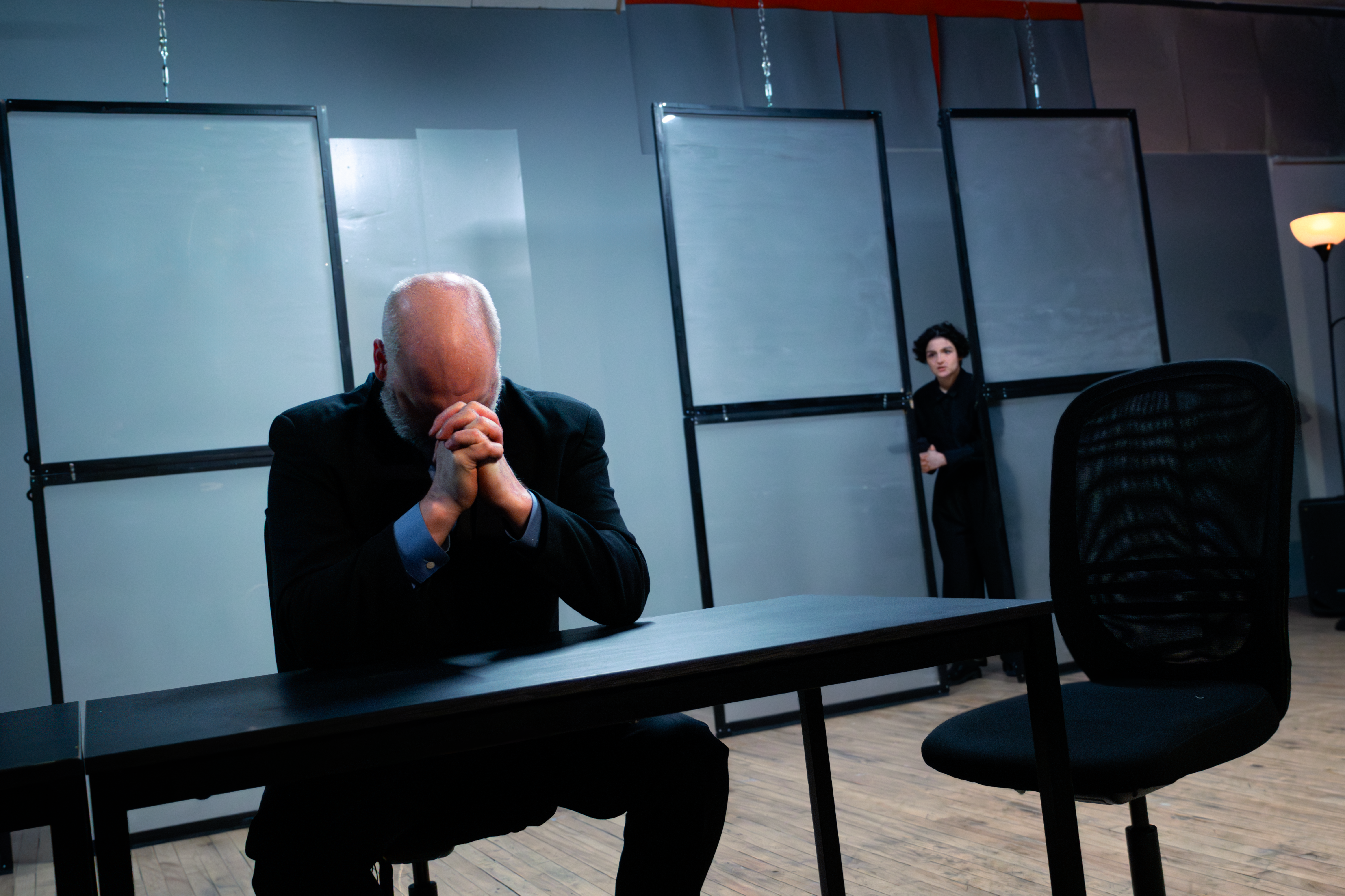 Visually, the world is defined with clever precision. Kenzia Dalie’s geometric office design traps the characters within a rigid environment, its semi-transparent plastic panels suggesting constant exposure that denies privacy at every turn. Franco Pang’s cool LED lighting is haunting and direct, and Lucy Ellis’s layered sound design works beautifully in tandem to create an atmosphere that feels both sterile and ominous. Together, these elements flicker between the tangible and the psychological with ease. Even with their modest means, the technical elements achieve a slick and unsettling cohesion, reinforcing the sense that this is a space where control is both asserted and eroded.