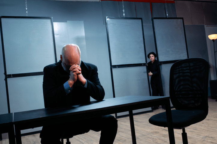 Abridged and directed by Alex Jodi Verge, the production drops us not into Elsinore, but into a modern corporate office, where power shifts not through crowns or royal proclamations, but through executive succession. After the sudden death of the company’s CEO, Claudius assumes control and marries Gertrude, setting in motion a chain of events that unfold with clarity and urgency. The ghost of Hamlet’s father (Andrew Pawarroo), rendered with a sharply defined unveiling, calls for vengeance, and we can’t help but lean in. From that moment onward, the play tightens into a study of grief colliding with expectation. The speed with which this Hamlet accepts the ghost’s revelation may raise questions within a contemporary framework. But the production does find its way through the tangles pretty brilliantly, committing fully to the emotional truth of that encounter, allowing its consequences to resonate and sink deep.