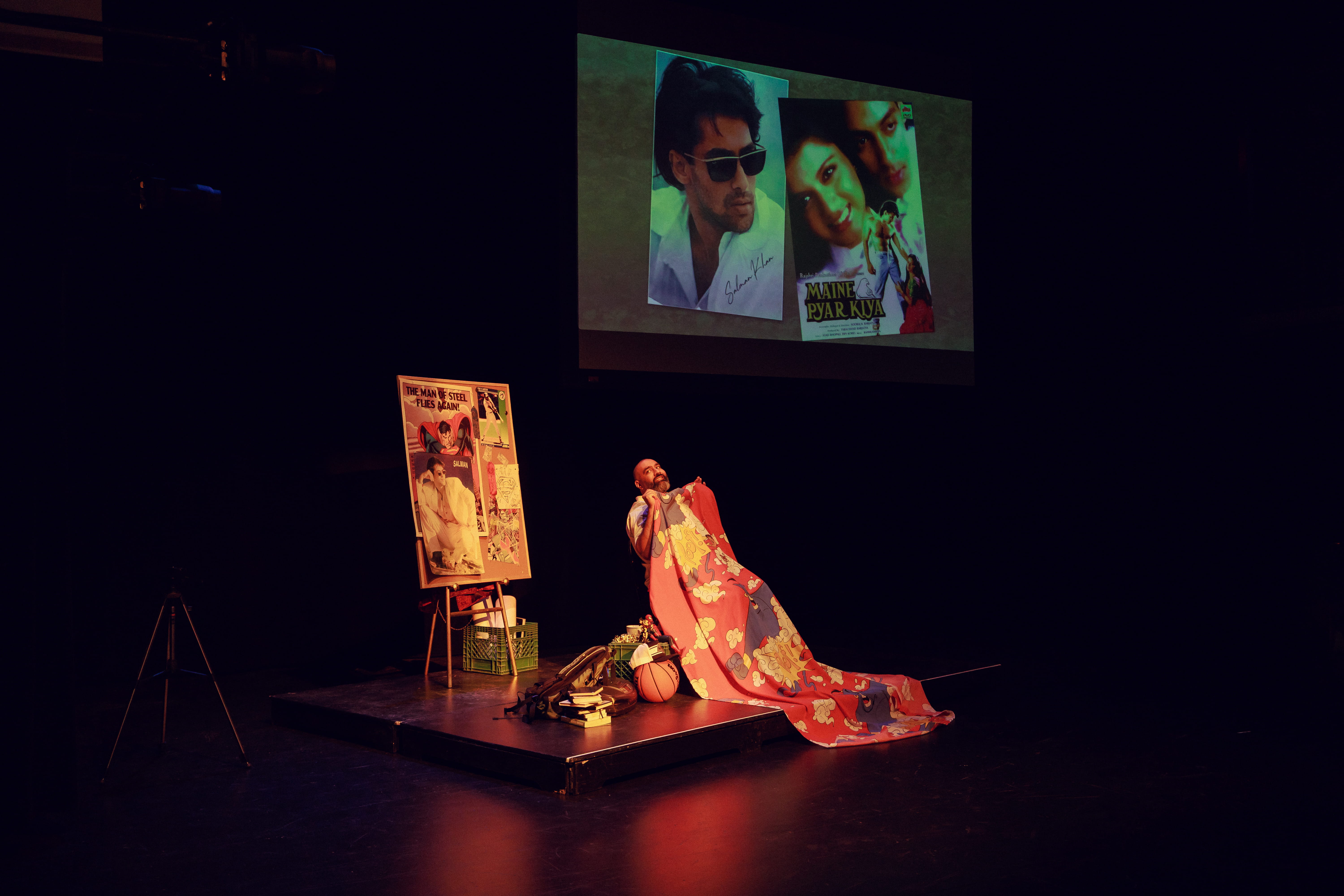 Balancing humour and heavier moments, Nawaaz brings authenticity to each life stage he depicts. As an enthusiastic kid, he nurtures big dreams, writing letters to Bollywood star Salman Khan and becoming fascinated by the tabla. Nawaaz’s portrayal of his younger self is endearing, which makes the following shift difficult to watch. As he faces racism ranging from blatant attacks to subtle comments, the open-hearted kid closes himself off until, dressed in chains and posturing for an audience, he abandons his identity to gain acceptance.